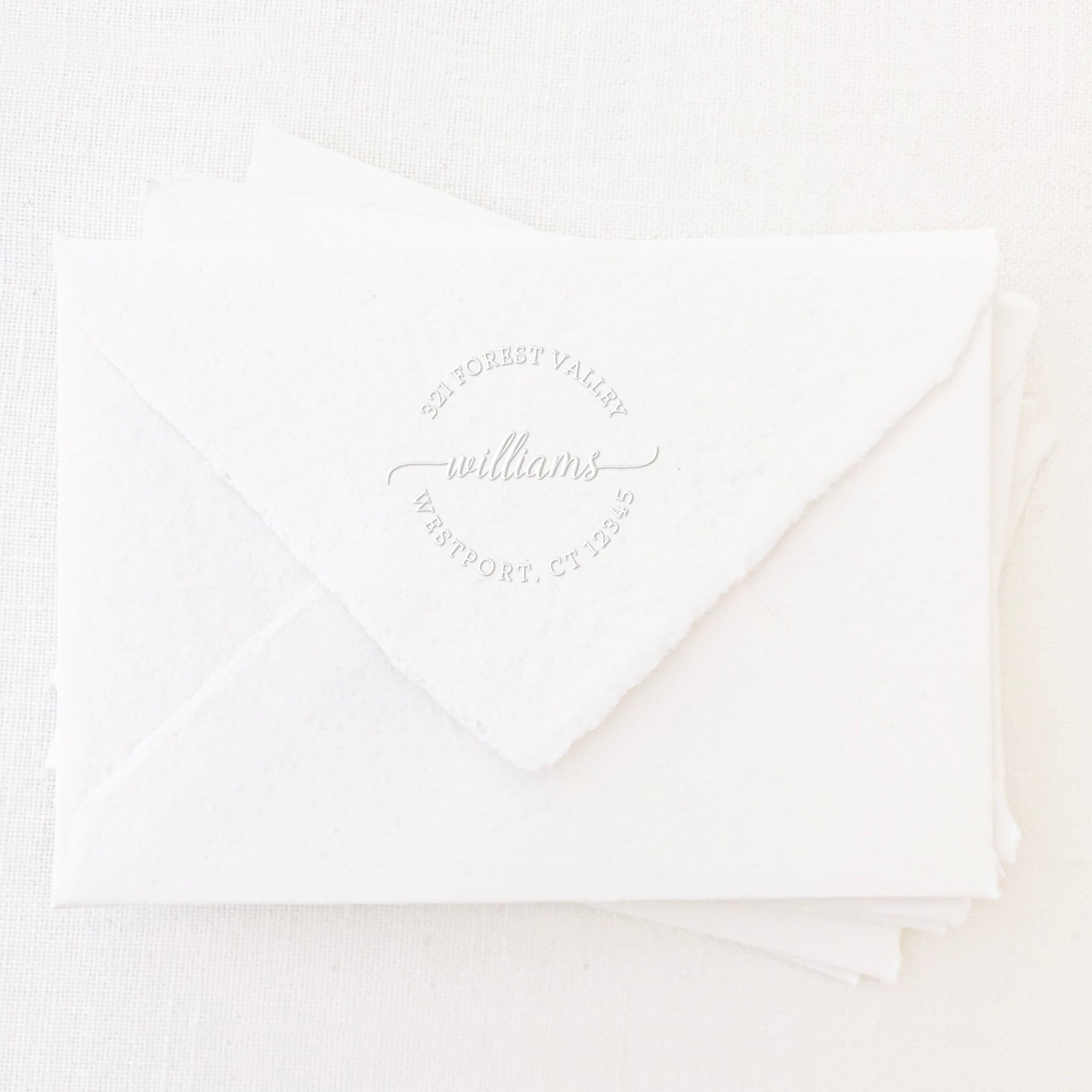 Deckled Edge Envelope Personalised with an Elegant Custom Embossed Impression
